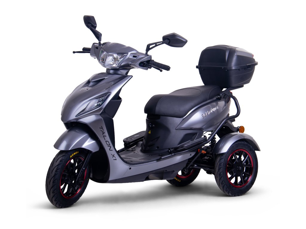 Talon X1 je výkonná elektrická tříkolka s 1 000W motorem, sportovním designem a třemi režimy jízdy – pro ty, kteří chtějí plnohodnotný skútr s jistotou tří kol, bez řidičského průkazu.